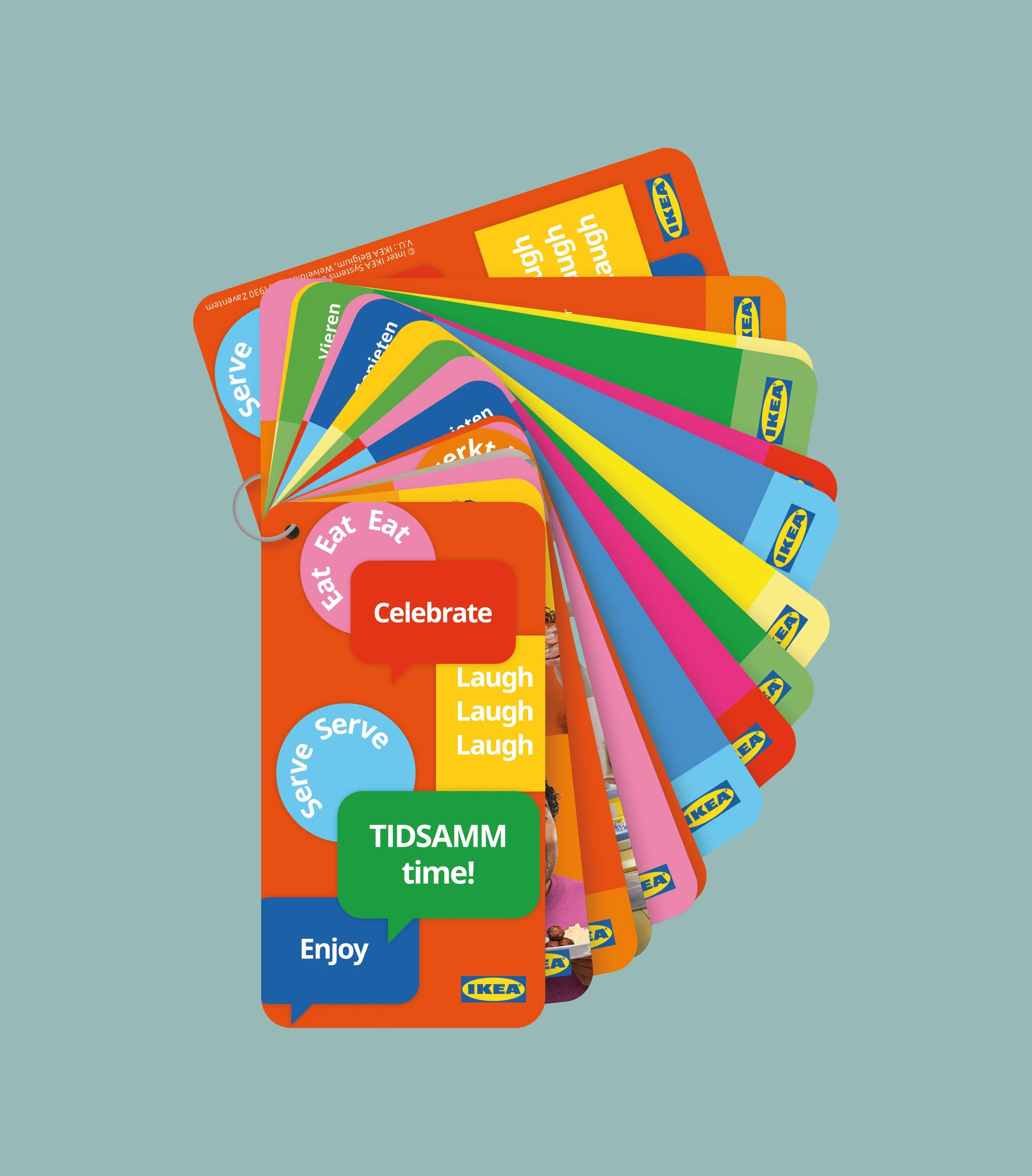 TIDSAMM time! is een kaartspel, ontwikkeld door Positivologie samen met IKEA. Het is bedoeld om te spelen tijdens het koken - een moment waarop je samen bezig bent en een goed gesprek als vanzelf ontstaat. Maar het kan natuurlijk ook op andere momenten, aan tafel bijvoorbeeld.